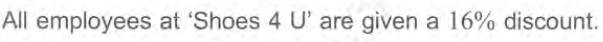 Anne Sweres works at Shoes 4 U. Anne Sweres bought a pair of Ladies' boots in the sale.