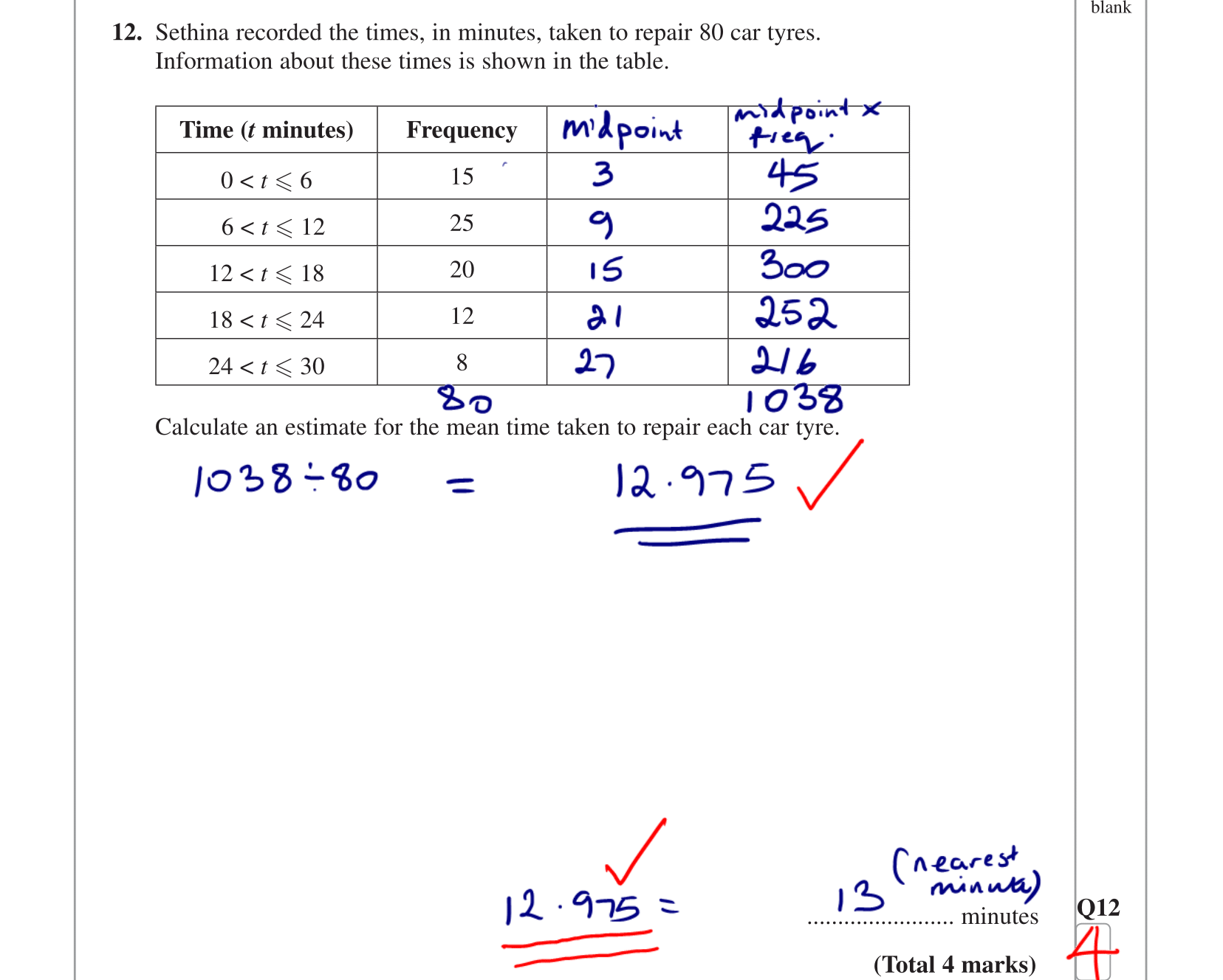 Topic: Mean from grouped frequency table