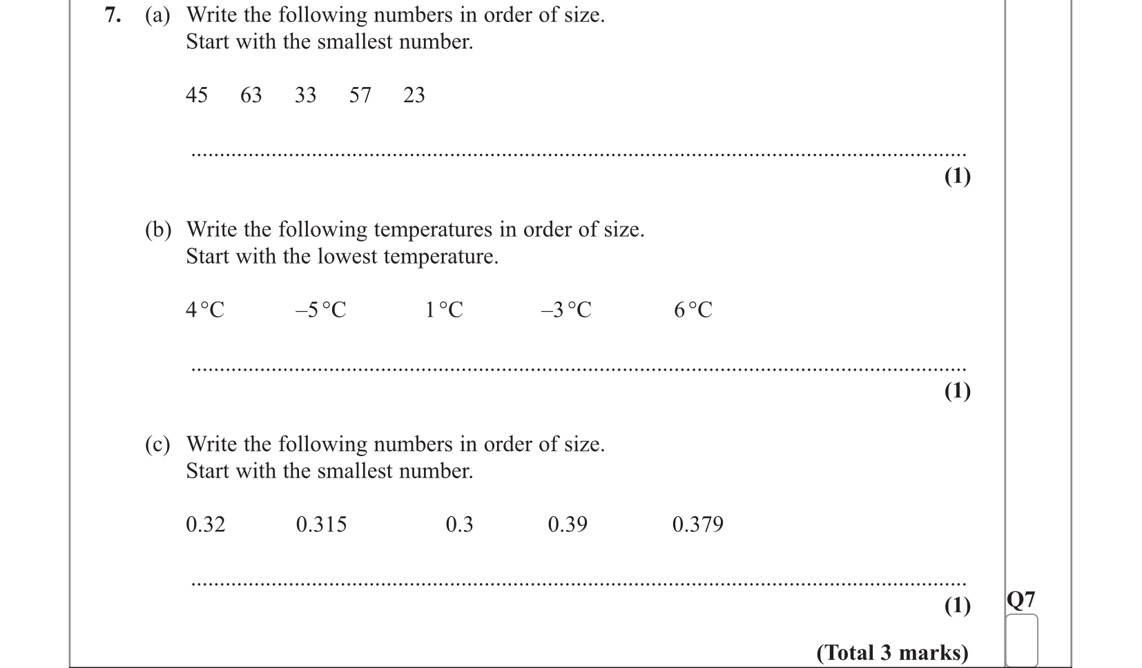 Topic: Ordering numbers