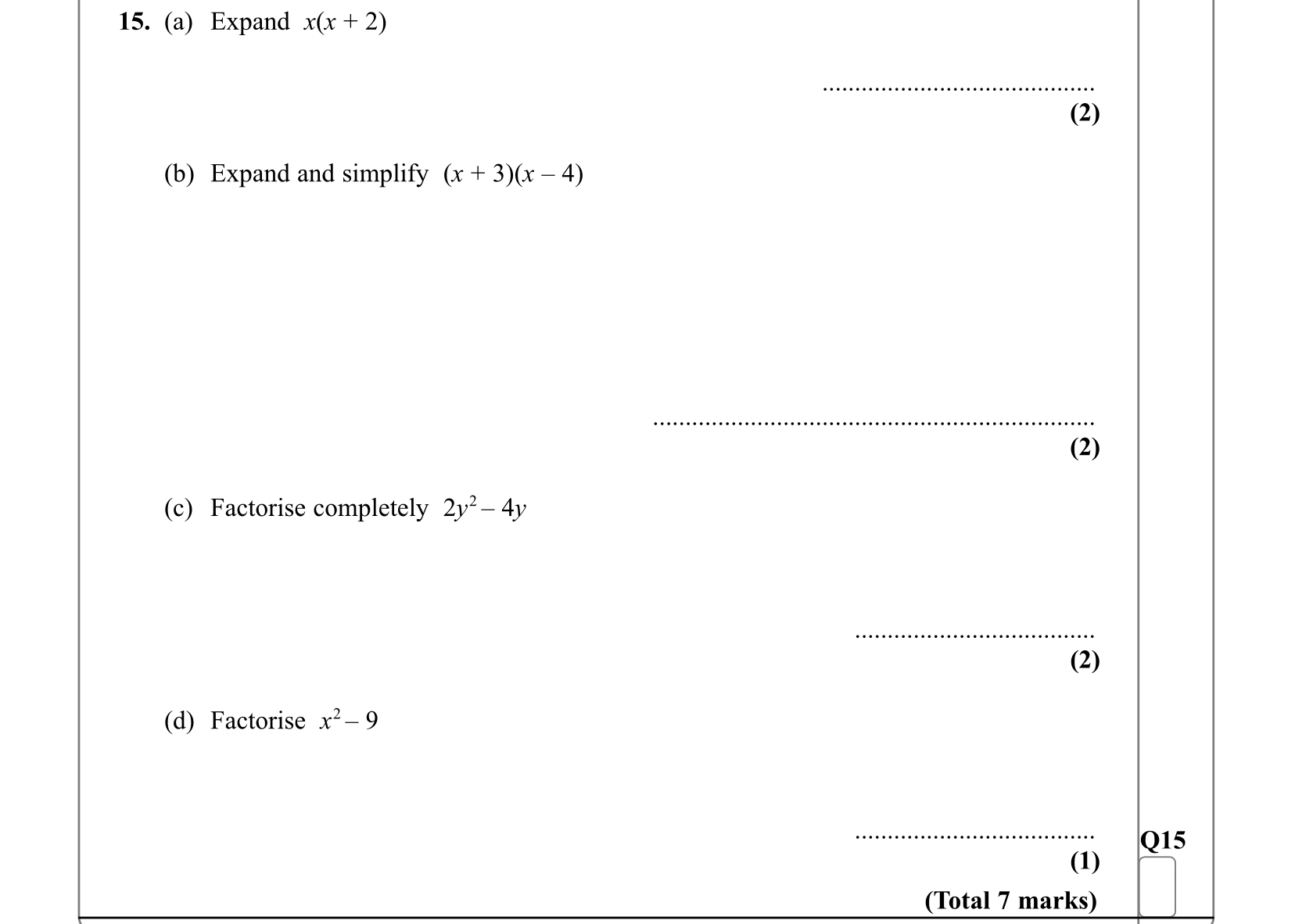 Topic: Expand Simplify and Factorise