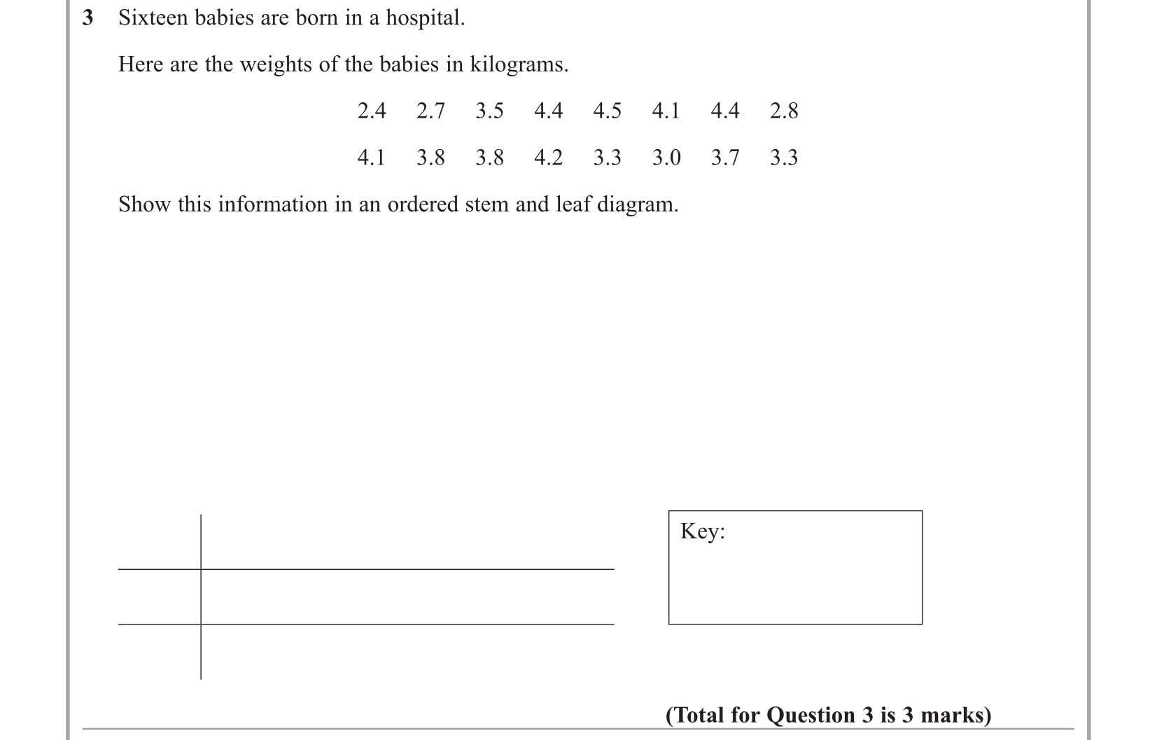 Topic: Stem and leaf